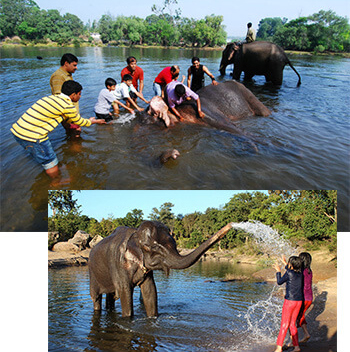 A world famous Dubare Elephant Camp is about 15 mins drive from The Sixth Element. The Karnataka Forest Department has about 150 Elephants in various camps and Dubare has been historically an important camp. A trained Naturalist is at hand to explain the various aspects of Elephant history, ecology and biology. The visitor can not only observe and learn but also participate in various activities involving Elephants and can enjoy a small ride on the mammoth itself.